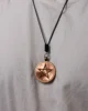 Conecta con la energía ancestral a través de este dije elaborado con disco central en cobre puro grabado con geometría sagrada y montado sobre un cabujón de bronce envejecido, que le da un estilo rústico y místico.
