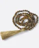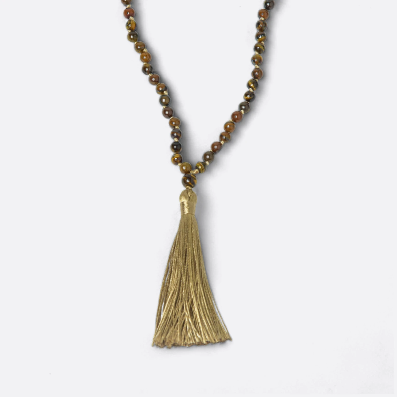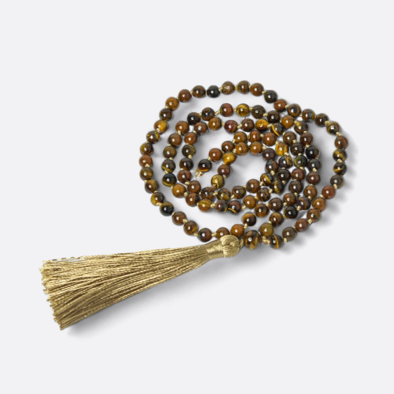 Cada Japa Mala Ojo de Tigre es el resultado de una cuidadosa artesanía, donde se seleccionan a mano las bolitas de ojo de tigre de la más alta calidad y se ensartan con precisión para crear un collar armonioso y equilibrado. El contraste entre las tonalidades tierra y los rayados naturales de las bolitas agrega un aspecto distintivo y elegante a este accesorio espiritual.