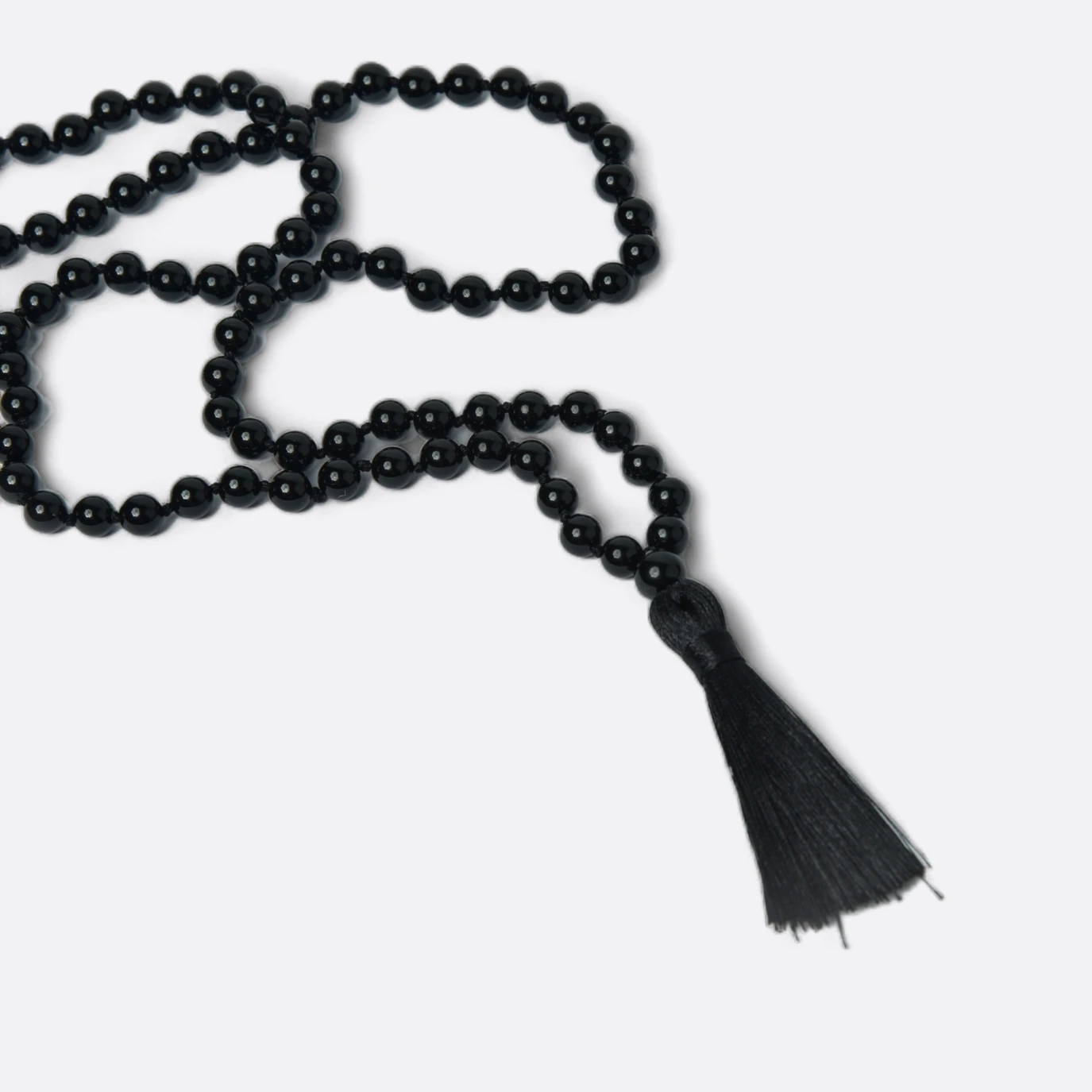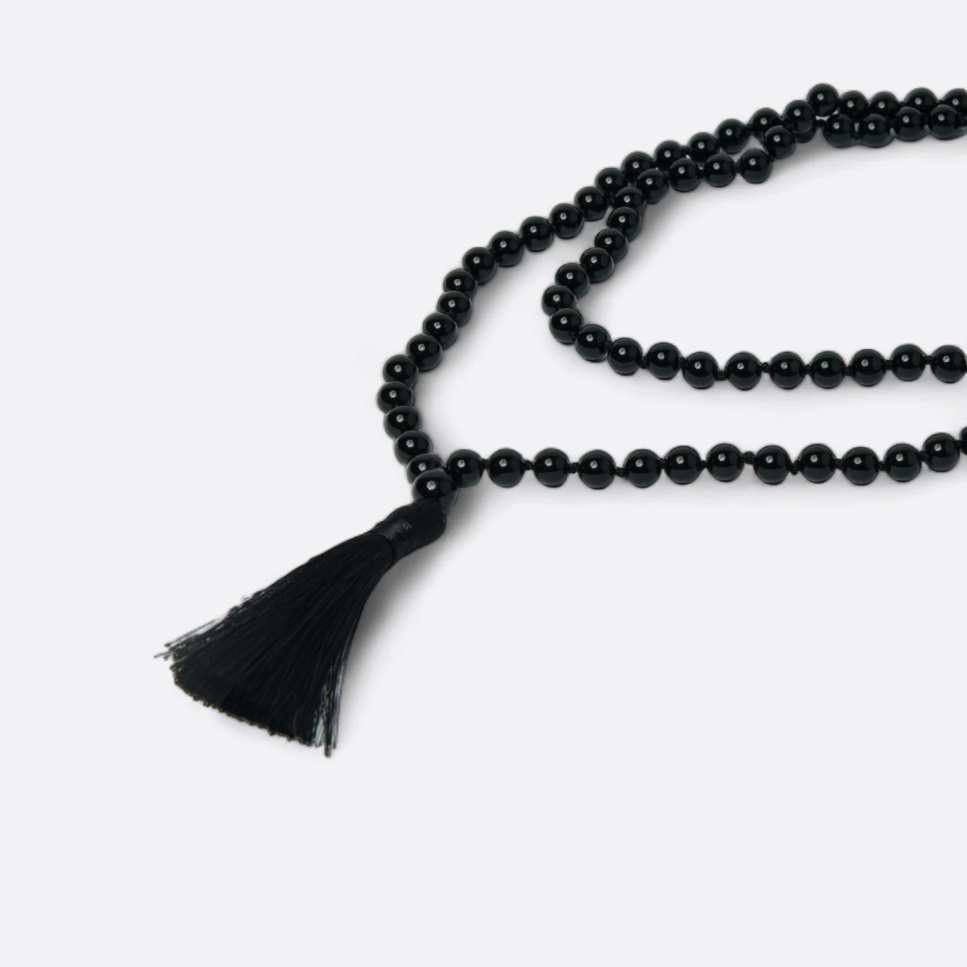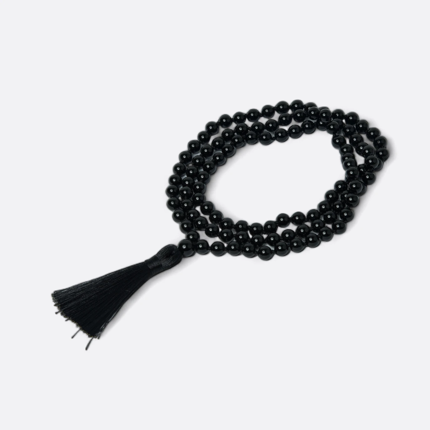 La Japa Mala de Ónix es una herramienta de meditación con 108 cuentas de ónix, cada una de 6 a 8 mm de diámetro. Las cuentas están separadas por nudos y unidas por un hilo duradero. Utilizada para contar repeticiones de mantras durante la meditación, el ónix aporta propiedades de protección y estabilidad. La Mala incluye una borla decorativa como cierre, que además de ser estético, facilita el conteo durante la práctica meditativa
