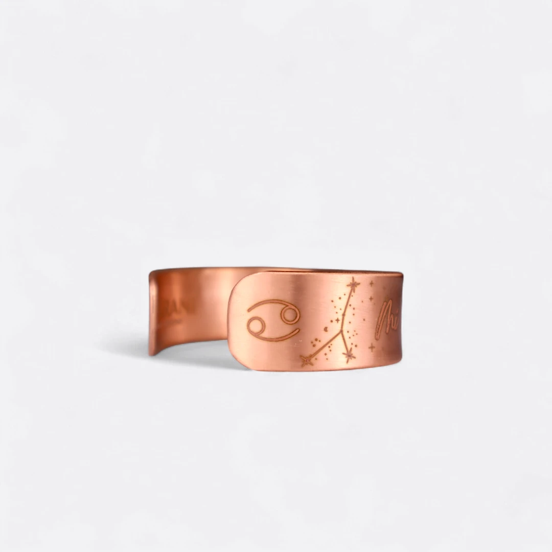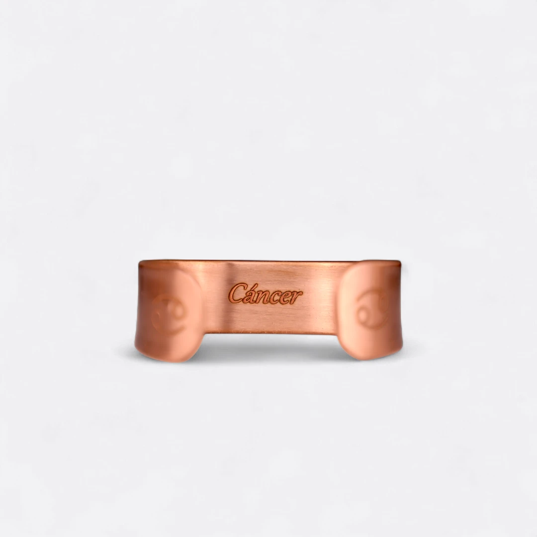 El cobre favorece el equilibrio energético y la serenidad emocional, ayudando a liberar tensiones y fortalecer la intuición. Su calidez natural armoniza con la naturaleza sensible de Cáncer, brindando contención y bienestar.
